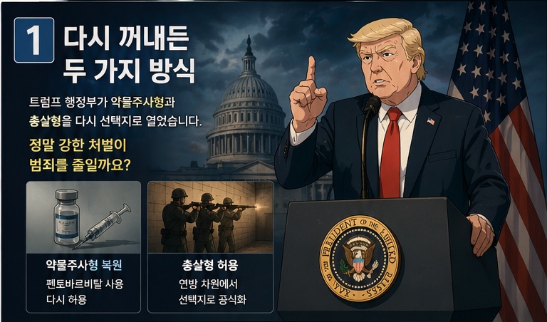 그런데 정말 처벌이 강해지면 범죄가 줄어들까요? 트럼프 행정부가 약물주사형과 총살형을 다시 꺼내든 지금,