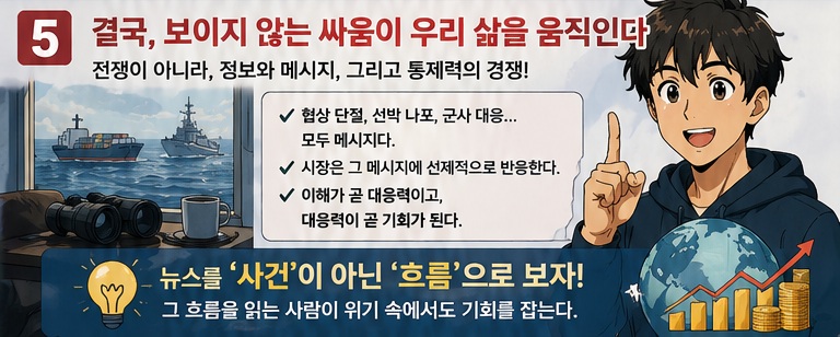 주식 앱을 보다가 특별한 악재가 없는 것 같은데도 시장이 흔들리는 걸 본 적이 있습니다. 이유를 찾아보니 결국 이런 지정학적 긴장이었습니다. 그때부터 저는 뉴스와 시장을 연결해서 보기 시작했습니다.